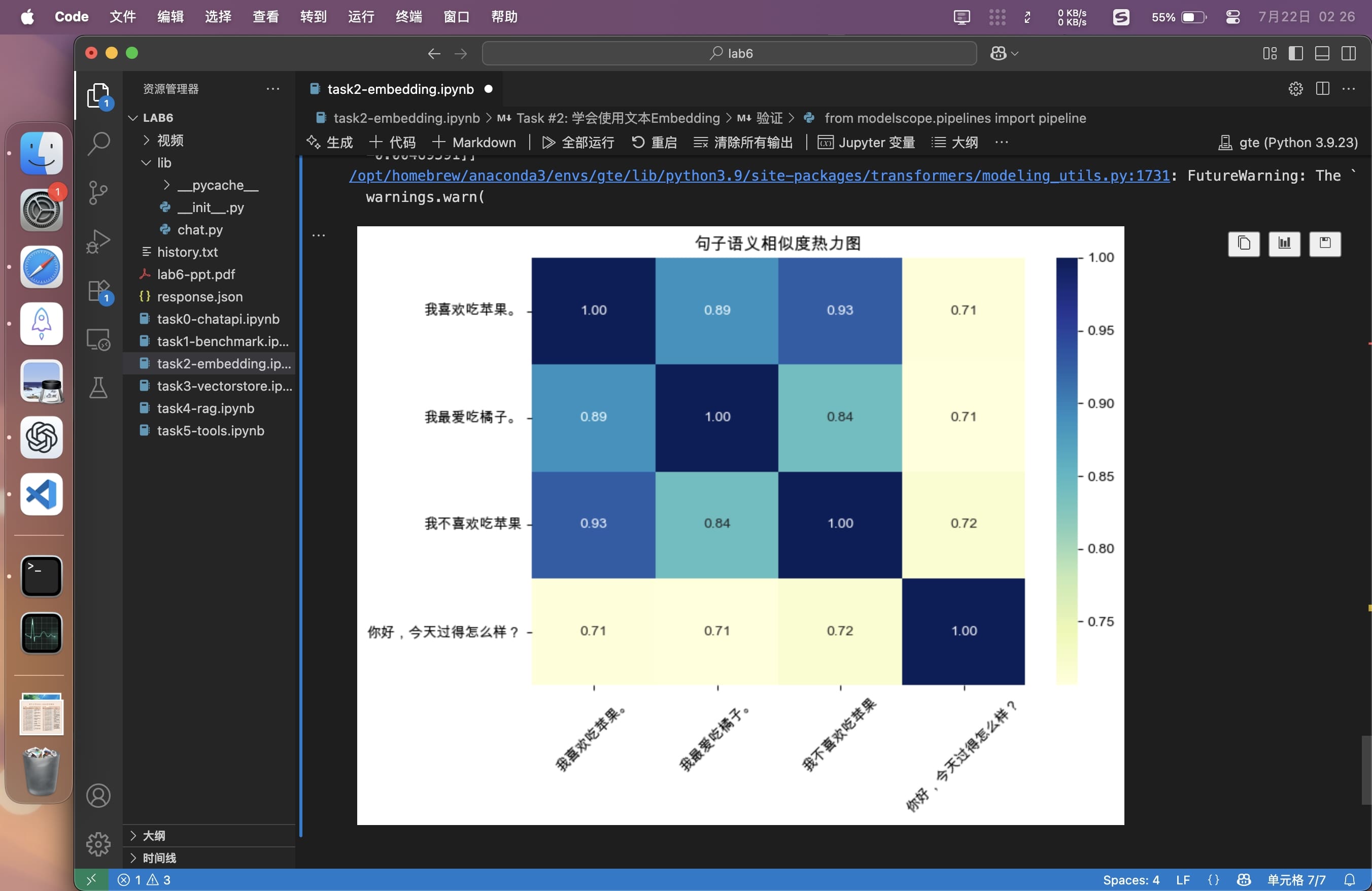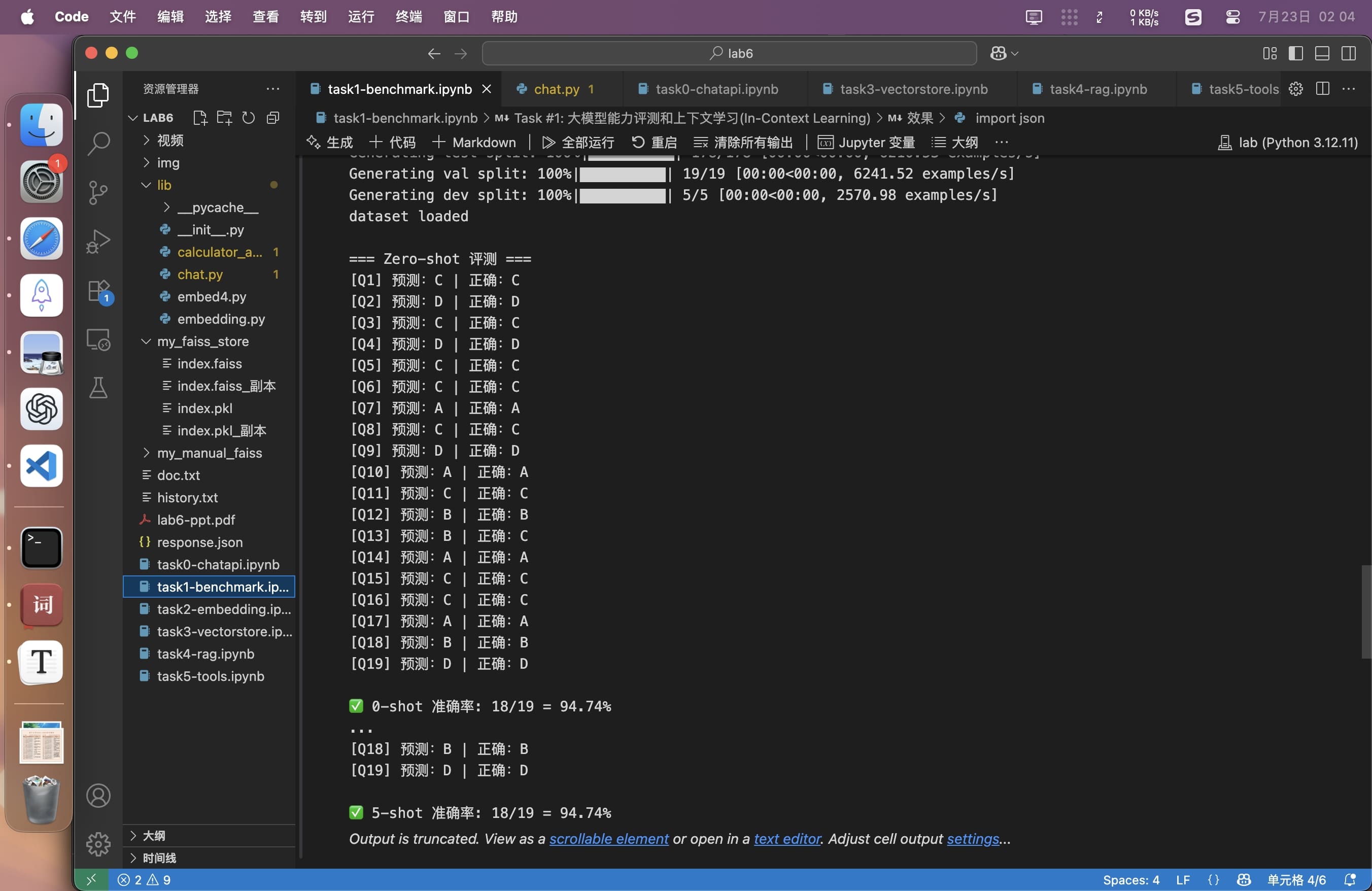 我尝试了很多次,包括用task3中的embedding,重新实现embedder,在脚本内实现embedder,重新实现写入faiss store,在脚本内实现写入faiss store。当然,无一例外都失败了,从版本兼容性问题到文件写入问题,甚至莫名其妙的python内核崩溃。